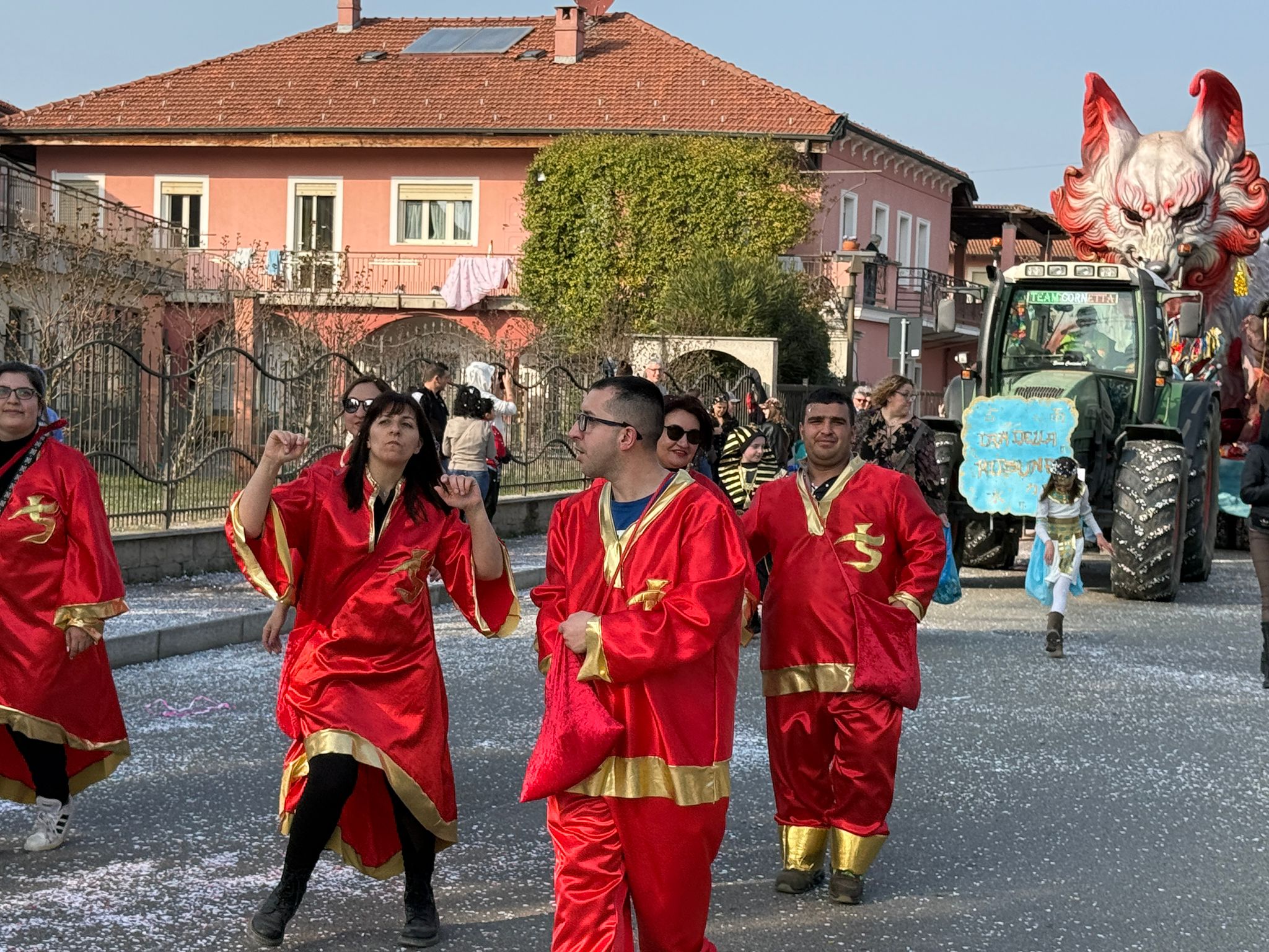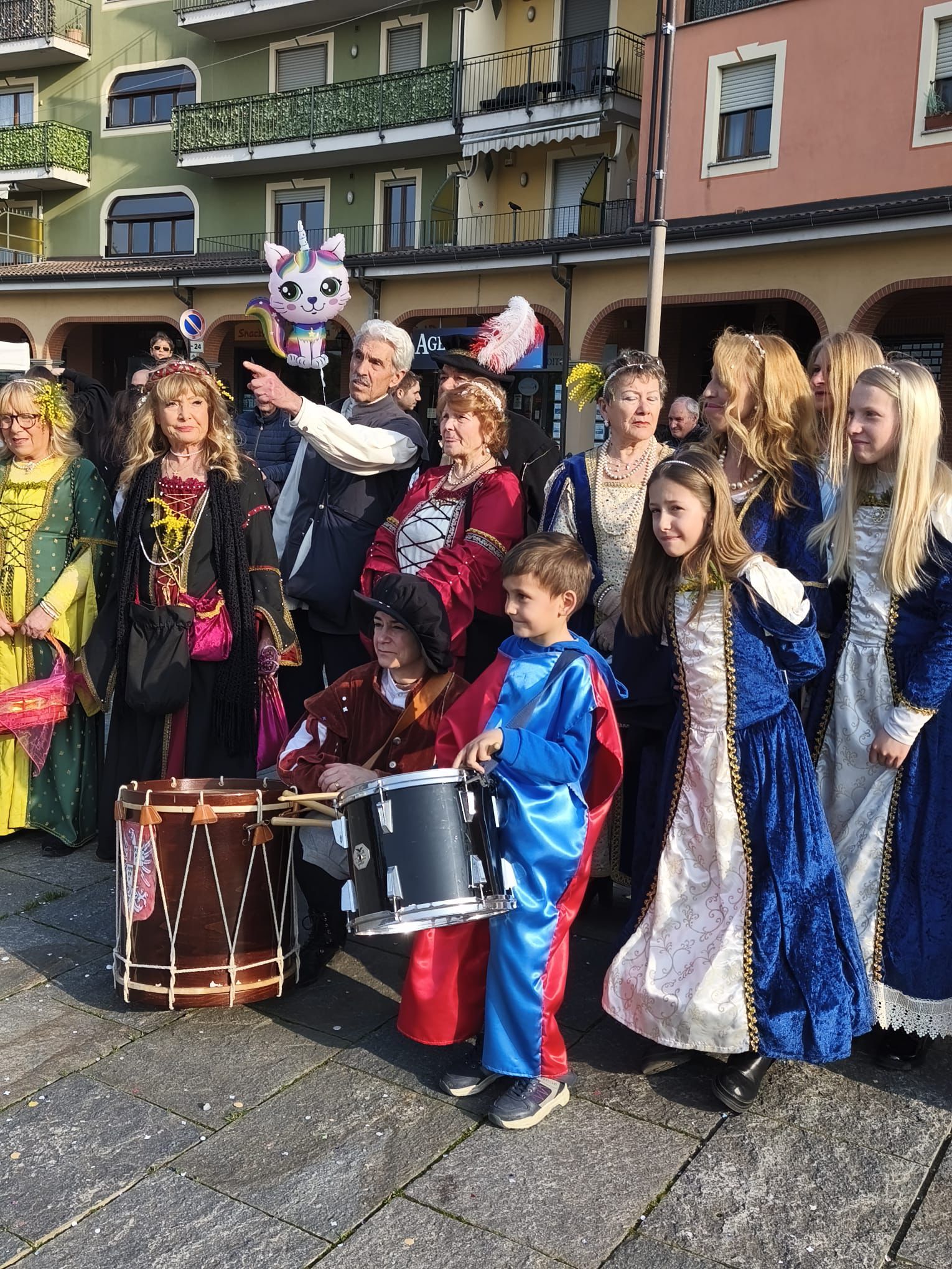Vedere i velluti, i broccati e i dettagli curati dei nostri costumi storici mescolarsi a una pioggia di coriandoli e stelle filanti crea un contrasto magico. È il nostro modo speciale di ricordare a tutti, dai più grandi ai bambini incantati, che la storia di Leinì è viva, vibrante e sa anche festeggiare.